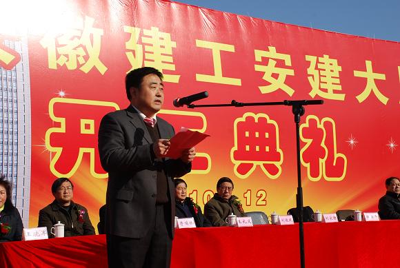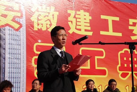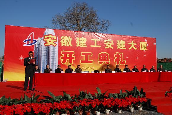 開工典禮上,安徽建工集團董事長胡運成發(fā)表了充滿激情的講話。他說:“記得2003年7月28日,是安徽建工歷史上一個難忘的日子。集團機關從建設廳大院搬遷到建工大廈集團本部,擁有了自己的辦公樓,從此,我們開始了改革脫困的艱難征程。7年來,我們堅持解放思想,與時俱進,按照“脫胎換骨、二次創(chuàng)業(yè)”系統改造企業(yè)的思路,以發(fā)展為主線,以創(chuàng)新為動力,以改革為突破口,完善戰(zhàn)略,提升文化,整合資源,調整結構,強化管理,加強黨建和精神文明建設,全面推進企業(yè)進步,在充分競爭的市場環(huán)境下,連續(xù)7年實現了跨越式發(fā)展。7年后的今天,我們站在又一個新的起點,即將開始“十二五”的征程。我們即將開工建設一座現代化的新辦公樓——安建大廈。這標志著安徽建工“泥瓦匠住草房”的時代即將結束。”他指出,安建大廈的開工,是安徽建工發(fā)展史上具有里程碑意義的大事、喜事。大廈的建設對于優(yōu)化集團資產結構和資源配置,改善辦公環(huán)境,保障機關高效有序運轉,樹立企業(yè)形象,實施品牌戰(zhàn)略,提升安徽建工的知名度和美譽度,增強發(fā)展能力和發(fā)展后勁,推動集團又好又快發(fā)展,實現二次創(chuàng)業(yè)目標具有非常重要的意義。