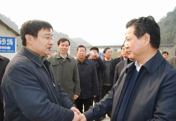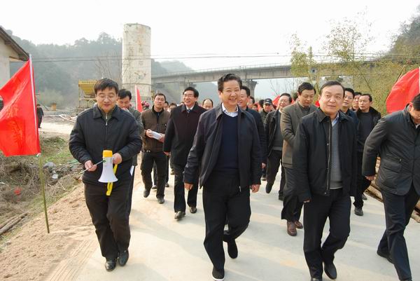 3日下午,黃省長蒞臨寧績高速07標視察。在該項目現場,黃省長與汪總進行了親切地交談。黃省長高度評價了公司近年來的發展歷程,高興地說,“以前安徽路橋還很困難,發不出工資;今天看到了安徽路橋足跡遍布十二省市,規模大,效益好,我由衷地感到欣慰。”臨上車前,黃省長緊握汪總的手語重心長地鼓勵安徽路橋做大做強,為推動安徽公路事業發展承擔更多的責任。