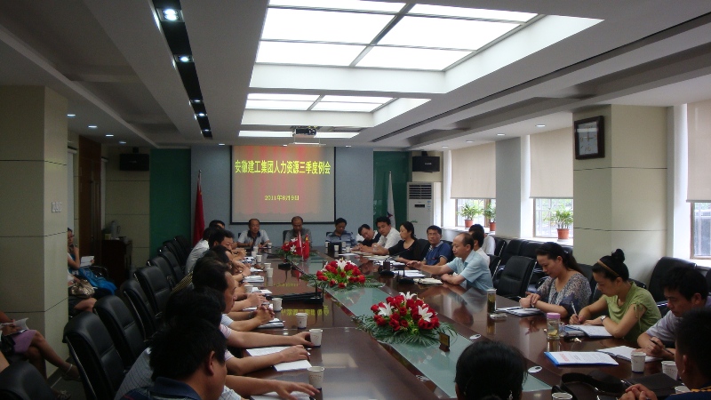 2011年8月9日下午,集團公司在建工大廈三樓會議室召開三季度人力資源工作例會,所屬各單位、直屬經濟實體及安徽水利股份公司人力資源分管領導、部門負責人參加會議。集團總經理、副董事長、黨委副書記趙時運出席會議并作重要講話。集團人力資源部主任李鵬飛主持會議。