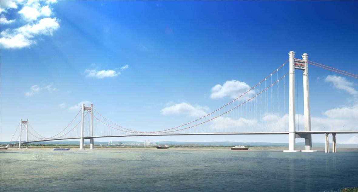 馬鞍山長江公路大橋橋型新穎,技術含量高。左汊主橋采用2×1080米三塔兩跨懸索橋,主跨跨度突破千米,位列世界同類橋型第一;主纜長度突破3000米;鋼混疊合塔規模為世界第一;中塔還首次采用塔梁固結體系,抗風吹浪打能力強,這也是世界上的創新。右汊主橋采用2×260米三塔斜拉橋,橋塔為橢圓拱型,為國內首座拱型塔三塔斜拉橋。大橋指揮部還通過動畫的方式,生動形象的演示了長江大橋施工的關鍵步驟和過程方法。