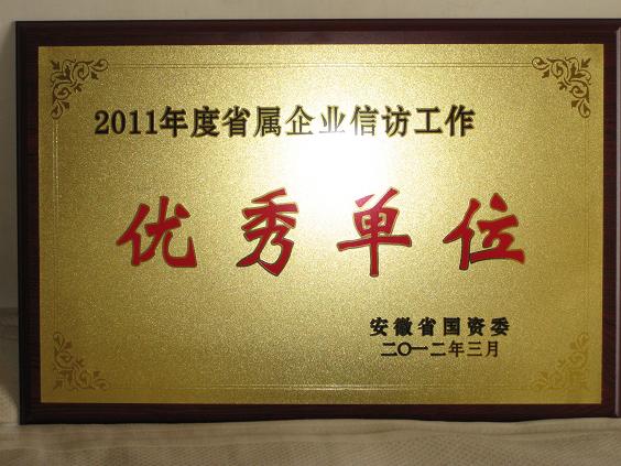 安徽建工集團榮獲“2011年度省屬企業信訪工作優秀單位”榮譽稱號