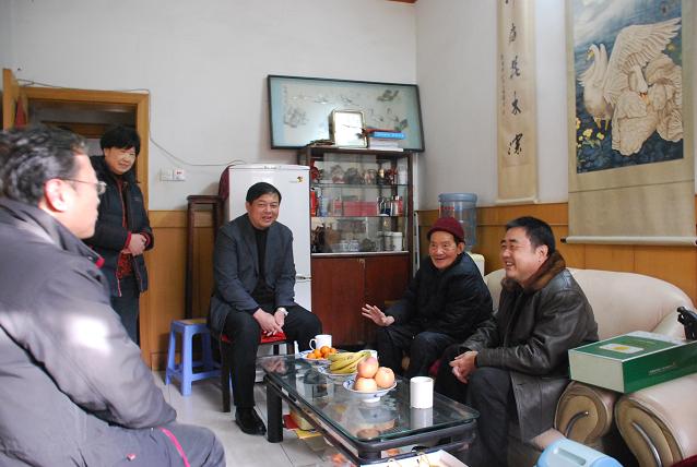 在省安裝公司楊樹起、曹明建、陳懷和家,集團公司總經理、副董事長、黨委副書記趙時運仔細詢問了他們的生活和身體情況,趙總還看望了省建科院離休老同志范久之,對他們為企業作出的貢獻表示感謝,并代表集團公司黨委提前向他們及全家拜年。