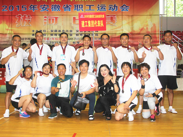 8月19日至20日,全省職工運(yùn)動會拔河比賽在蚌埠舉行,來自全省各地市、省直機(jī)關(guān)和省屬大企業(yè)共計26個代表隊參加了本次比賽。建工集團(tuán)代表隊所在的乙組,匯聚了來自省電力、華安證券、中鐵四局等多支高水平的代表隊。建工集團(tuán)代表隊從預(yù)賽開始,全體隊員勁往一處使,團(tuán)結(jié)協(xié)作,穩(wěn)扎穩(wěn)打,表現(xiàn)出高昂的斗志和較好的技戰(zhàn)術(shù)水平。經(jīng)過緊張激烈的比拼,建工集團(tuán)代表隊一路挺進(jìn)決賽,并最終獲得第二名的好成績。