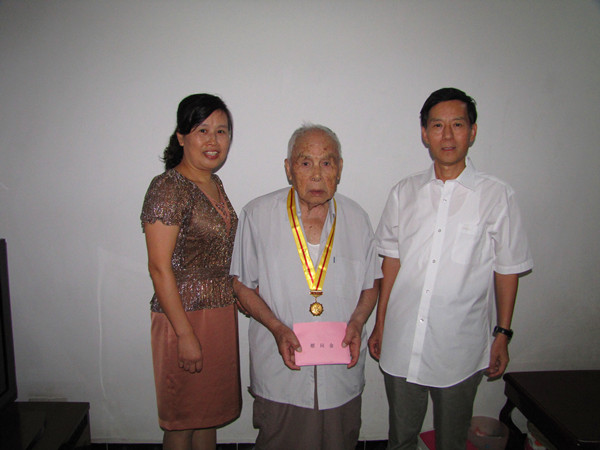 在紀念中國人民抗日戰爭暨世界反法西斯戰爭勝利70周年之際,8月25日,安徽建工集團工會主席、安徽三建公司黨委書記徐曉光慰問看望抗戰時期參加革命工作的安徽三建離休干部萬昆雪,代表上級黨組織向其頒發了“中國人民抗日戰爭勝利70周年”紀念章,并送去了慰問金,轉達了黨組織的親切關懷與誠摯祝福。