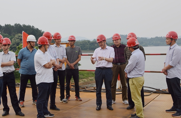 5月24日下午,集團(tuán)公司副總經(jīng)理、總工程師戴良軍到安徽路橋公司萬佛湖02標(biāo)項目檢查指導(dǎo)工作,集團(tuán)總工辦副主任崔林釗,安徽路橋公司副總經(jīng)理、總工程師彭申凱,副總經(jīng)理任杰陪同。