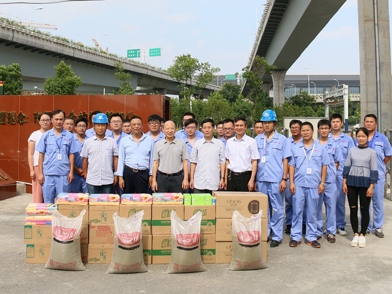 連日來,氣溫節節攀升,酷暑考驗著堅守在一線的員工,更牽動著集團領導的心。7月12日下午,集團公司黨委書記、董事長趙時運在集團工會主席徐曉光、副主席吳曉伍及安徽交航公司黨委書記、董事長、總經理李世龍陪同下,冒著高溫酷暑,前往安徽交航公司軌道交通4號線TJ03標項目部慰問,給奮戰在一線的施工人員送去防暑降溫物品。