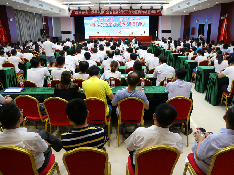 7月14日下午,由省總工會、省教育廳主辦,安徽建工集團工會承辦的安徽省“尊法守法·攜手筑夢”服務農(nóng)民工法治宣傳行動啟動儀式在安徽建工集團舉行。省政協(xié)副主席、省總工會主席童懷偉,省總工會副主席李素萍,安徽建工集團黨委書記、董事長趙時運等領導出席;農(nóng)民工代表、職工代表及大學師生志愿者代表等300多人參加了啟動儀式。