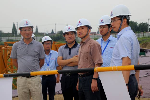 趙時運董事長還冒雨查看了安徽水利合寧高速改擴建項目、安徽三建泰州明發廣場項目,聽取了各項目部工作情況的匯報,對項目部前期工作進展給予了肯定。趙時運董事長針對項目部匯報情況分別進行了點評,就項目策劃、成本管理、質量安全、項目黨建等工作進行了強調和部署。最后,趙董事長結合集團公司近期開展的“講重作”專題警示教育及省屬企業“十大專項治理”工作要求,通過具體鮮活的案例分析,分別為兩個項目部上了一堂生動的黨課。