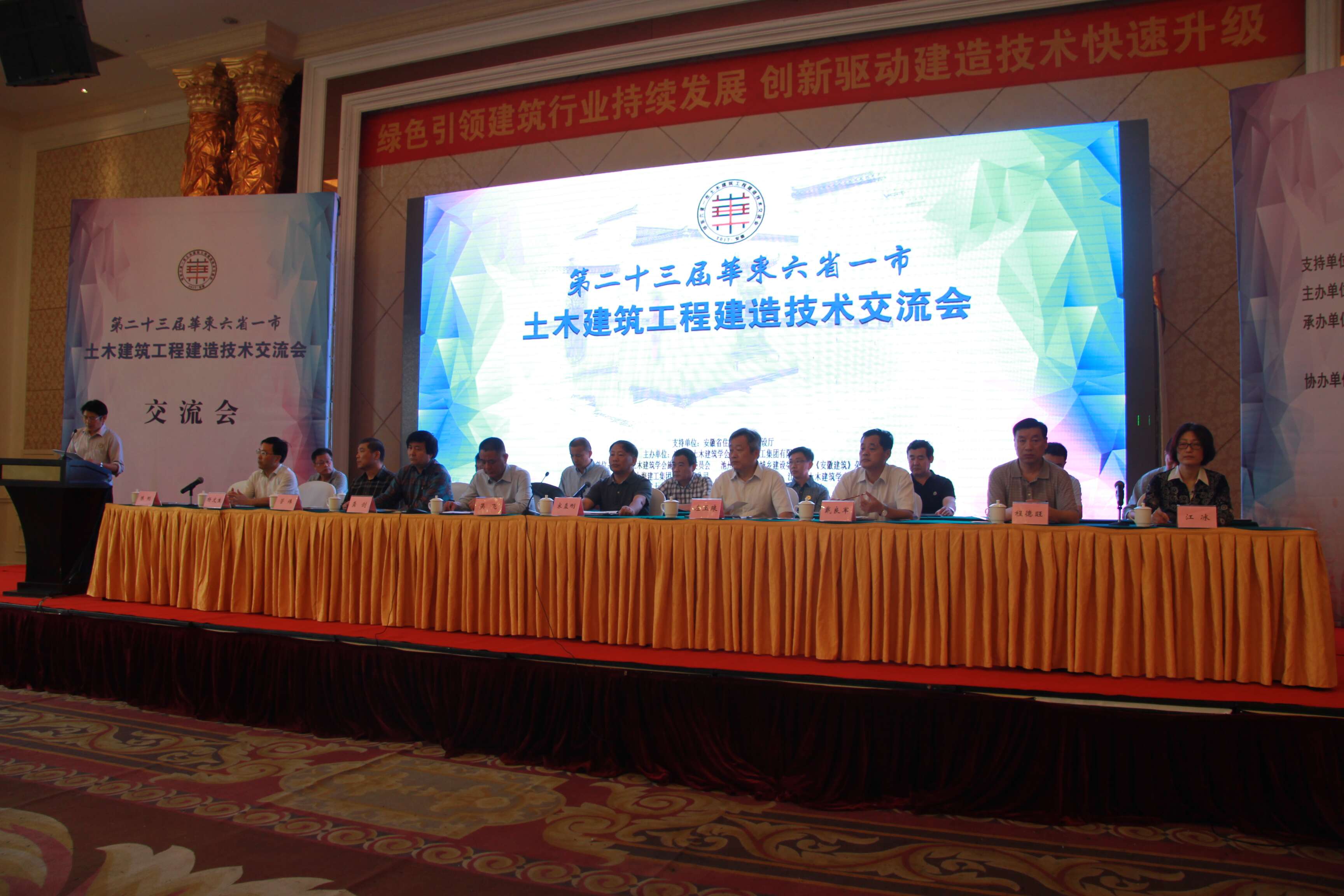 9月21日-22日,由集團公司與安徽省土木建筑學會共同主辦的第二十三屆“華東六省一市土木工程建造技術交流會”在池州市隆重召開。來自上海、山東、江蘇、浙江、福建、江西和安徽的300多名土木工程建造行業專家、學者及有關方面代表參加了本次交流會。安徽省住房和城鄉建設廳總工程師宋直剛、安徽建工集團有限公司副總經理、總工程師戴良軍、池州市人民政府副秘書長吳飛、安徽省土木建筑學會理事長左玉瑯出席開幕式并發表了熱情洋溢的講話。安徽建工集團總工辦主任、安徽省土木建筑學會施工專業委員會主任委員陳剛主持開幕式并致歡迎詞和作會議總結;會上上海建工集團有限公司總工程師龔劍向左玉瑯交接了“華東六省一市土木工程建造技術交流會會旗”,標志著新一屆土木建造探索精神的傳遞。