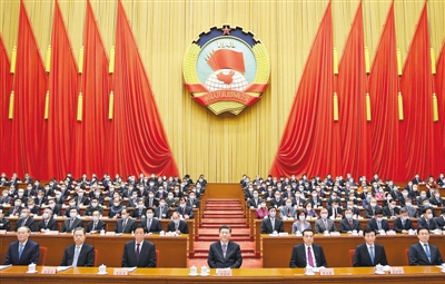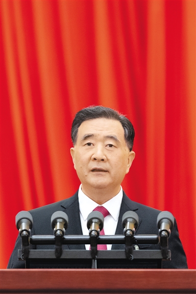 汪洋代表政協第十三屆全國委員會常務委員會,向大會報告工作。