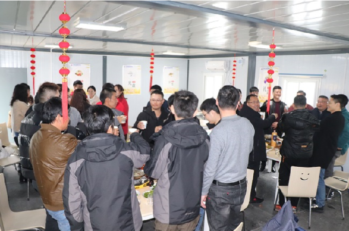 為確保留守職工和工人在工地上過一個溫暖年、幸福年,項目部在生活服務上做足了保障。還未到春節,項目部便已掛起了大紅燈籠,貼上了漂亮窗花,處處洋溢著濃郁的喜慶和歡樂,年味兒十足!