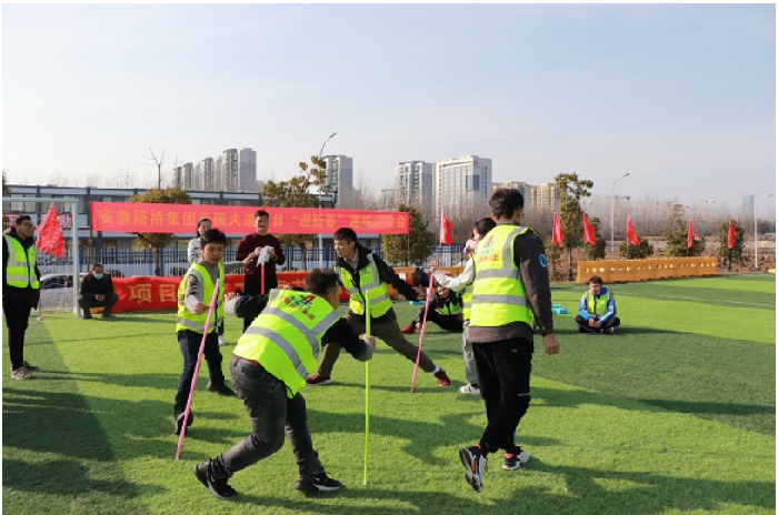 項目部還舉辦了“迎新春”趣味運動會,讓留守員工在工地這個別樣年過得更加熱熱鬧鬧,紅紅火火。摸石過河、同心擊鼓、不倒森林、集體跳繩,每個項目既是智慧和體力的角逐,更是團隊協作能力的比拼。從比賽開始,到結束,現場的歡聲笑語此起彼伏,加油助威聲不絕于耳,好不熱鬧。本次趣味體育比賽,培養項目員工競爭拼搏精神及團隊協作能力,提升項目凝聚力,號召項目全體員工在新年里精誠團結,步調一致,擰成一根繩,卯足一股勁,團結協作,合力攻堅,為項目年度任務目標的圓滿完成而共同努力奮斗。