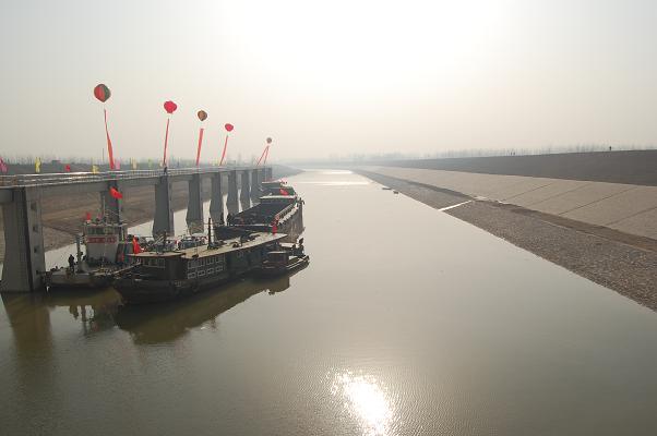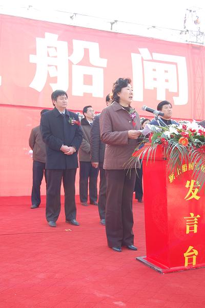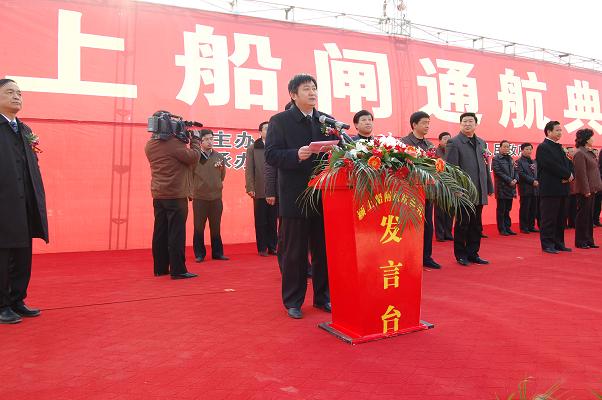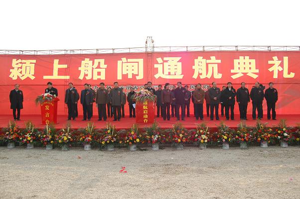 潁上船閘通航典禮由省交通廳副廳長羅寧主持。省長助理花建慧代表省政府向潁上船閘建成通航表示祝賀,她指出:潁上船閘建設是我省沙潁河復航的第一個工程,是全省“861計劃”重要項目,建設潁上船閘,開辟阜陽航運的第二條入淮通道,是沙潁河航運全線復航的迫切需要,對加快淮河航道網建設、完善區域綜合運輸體系、改善流域水環境、推進國家高等級航道網建設、促進豫皖合作,特別是皖北地區發展都是具有十分重要意義。省港航建設投資集團公司總經理李家俊隨后詳細介紹了潁上船閘建設情況,他說:潁上船閘的勝利通航是在省委省政府的悉心關懷下、阜陽市委市政府和阜陽人民的大力支持下,經過所有參建單位的近三年辛勤工作,今日終于勝利通航。潁上船閘建成通航既實現了沿淮群眾多年的夙愿,也為全面回復沙潁河航運開了一個好頭,作為安徽省“兩干三支”水運主航道之一的沙潁河全線復航已是指日可待,將對地方經濟的發展起到有力的促進作用。最后,副省長黃海嵩為穎上船閘通航啟動通航按鈕!