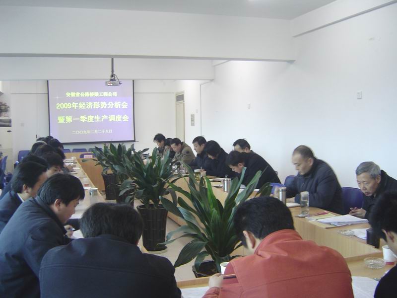 2月28日,安徽省路橋公司在四樓會議室召開2009年經(jīng)濟形勢分析會暨第一季度生產(chǎn)調(diào)度會。公司領(lǐng)導班子成員、直屬(生產(chǎn))單位負責人、機關(guān)部門負責人、直屬項目部經(jīng)理、總工和財務(wù)負責人共計50余人參加了會議。會議由副總經(jīng)理盛明宏主持。