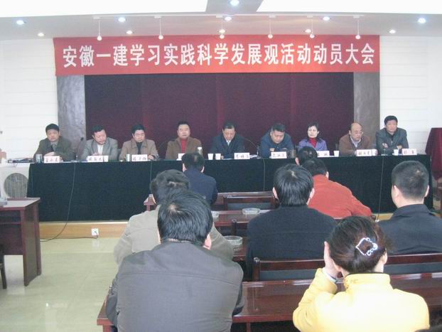 3月23日,安徽一建公司黨委召開了學習實踐科學發展觀活動動員大會。公司機關全體人員和各基層單位領導班子成員參加會議。安徽建工集團第二指導督察組組長李鵬飛、副組長潘琳應邀出席了大會。大會由公司黨委副書記、組委書記鄭軍主持。公司黨委書記鄭平、安徽建工集團第二指導督察組組長李鵬飛和公司總經理范毓慶先后作了動員和講話。