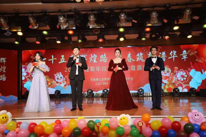 12月27日下午,安徽建工技師學院舉辦2025迎新聯歡會暨頒獎典禮。集團工會女工委副主任、信訪辦副主任饒曉寧出席聯歡會,學院黨委副書記、院長黃國平出席并發表了熱情洋溢的新年賀詞。