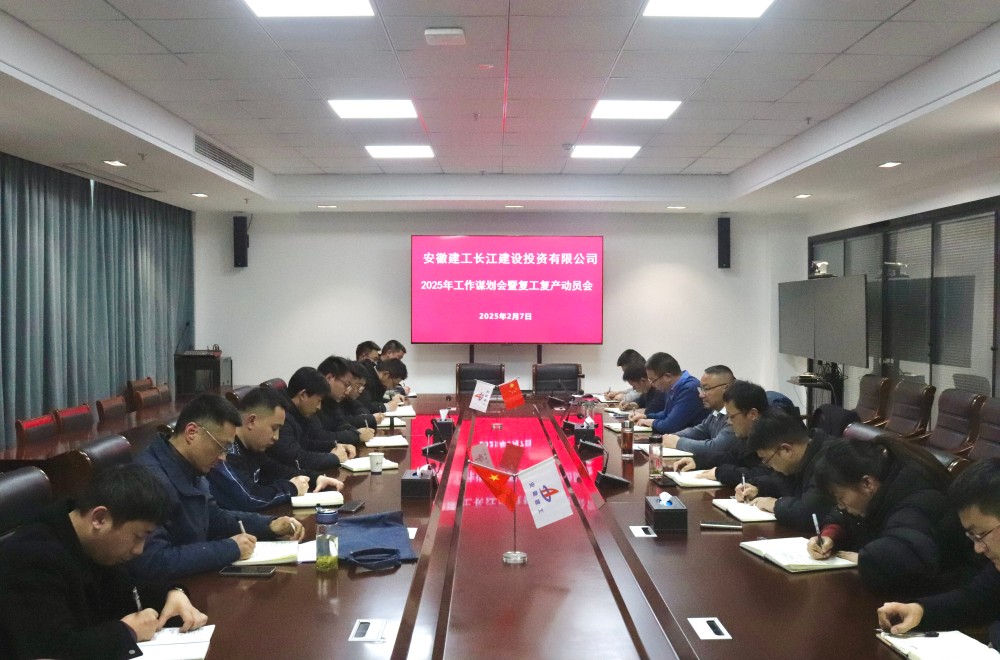 2月7日下午,安徽建工長江建投組織召開2025年工作謀劃會暨復工復產動員會,全面總結2024年工作取得的成績,客觀分析不足,科學布局謀劃2025年重點工作,進一步明確目標、統一思想,督促職工收心歸位,迅速進入工作狀態,書寫公司高質量發展新篇章。公司黨委書記、董事長、總經理代聲慶出席會議并講話,黨委委員、副總經理陸琪主持會議。