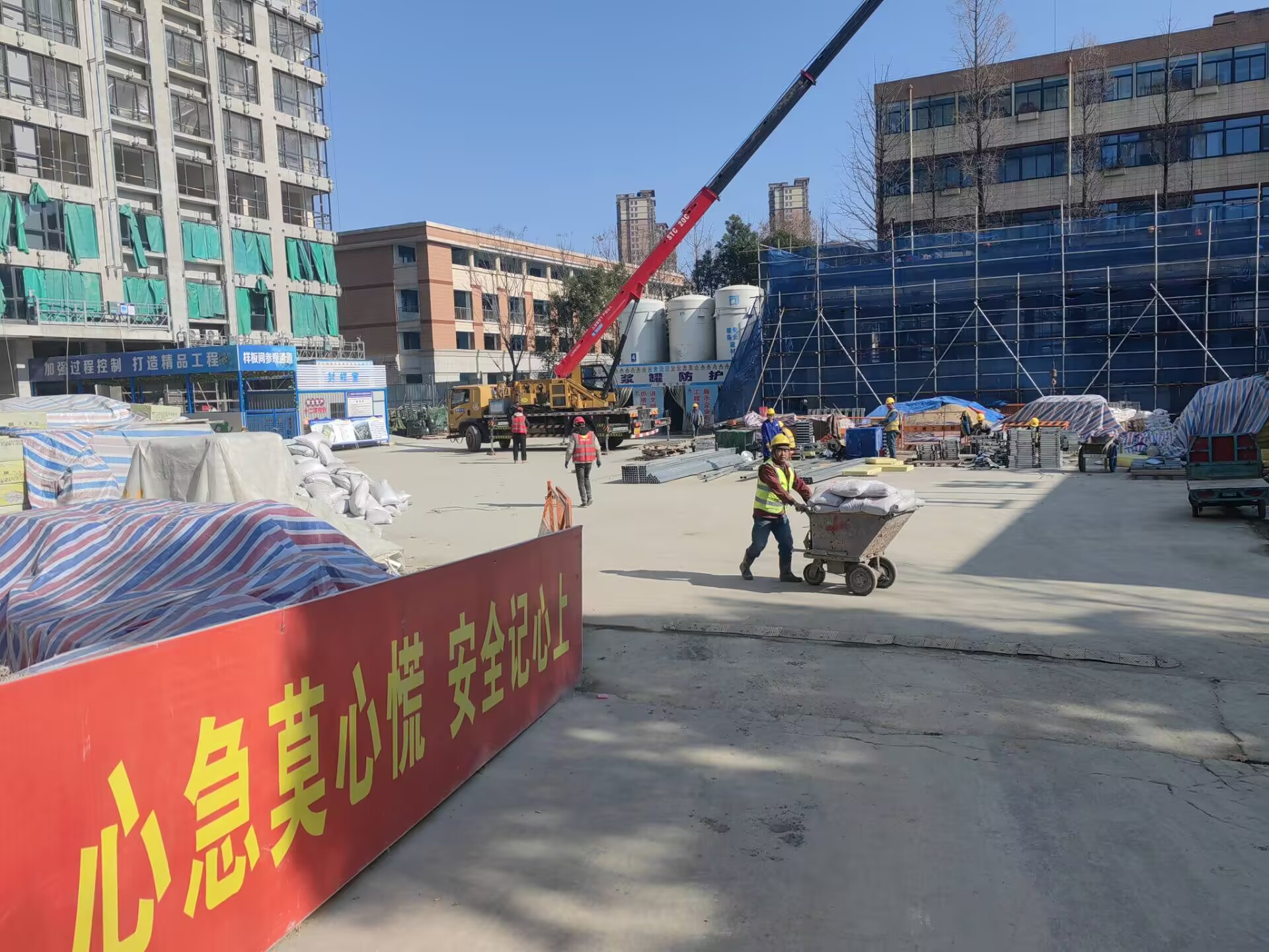 節(jié)后復(fù)工,安全是第一位的。項目部在復(fù)工前對施工現(xiàn)場進行了拉網(wǎng)式排查,重點檢查了深基坑、高支模、腳手架等危險性較大的分部分項工程,對發(fā)現(xiàn)的安全隱患立即整改,確保施工安全。同時,為了保障施工進度,項目部合理安排施工人員和機械設(shè)備,確保各項施工任務(wù)按時完成。