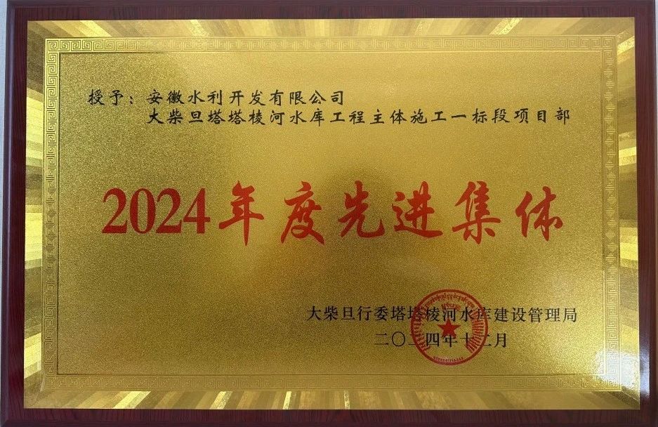 青海省大柴旦塔塔棱河水庫工程主體施工一標段項目部憑借卓越的工程管理能力和顯著的建設成效,榮獲建設單位“2024年度先進集體”稱號。