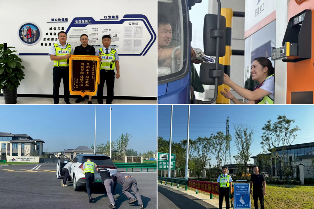 在蕭縣西收費站,一名收費員于暴雨中主動化身“修車工”,協(xié)助故障車輛脫困,車主事后專程送來錦旗致謝;濉溪北收費站工作人員在38℃高溫下,合力將一輛虧電新能源車推行300米至充電樁,及時化解困境。車主感動地表示:“比空調(diào)更涼快的是你們的熱心!”