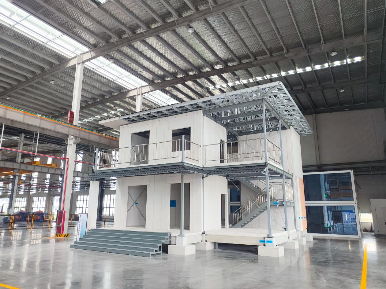 全自動三模板護欄生產線改革帶來的效能變化,不僅體現在交通安全設施領域,在裝配式鋼結構建筑領域更為直觀。在智能制造長豐產業園,一座206平方米的兩層小樓正在“快速組裝”,和傳統施工現場幾十人忙上幾個月不同,這里只需七八個工人,7天就能完成主體結構,工期比傳統建房縮短了60%以上。這套高效的建房模式,源自安徽建工集團與同濟大學協同研發的分層裝配式鋼結構建筑體系。該體系不僅工業化程度高、裝得快,抗震性能也更優,可廣泛應用于住宅、醫院、學校等場景。