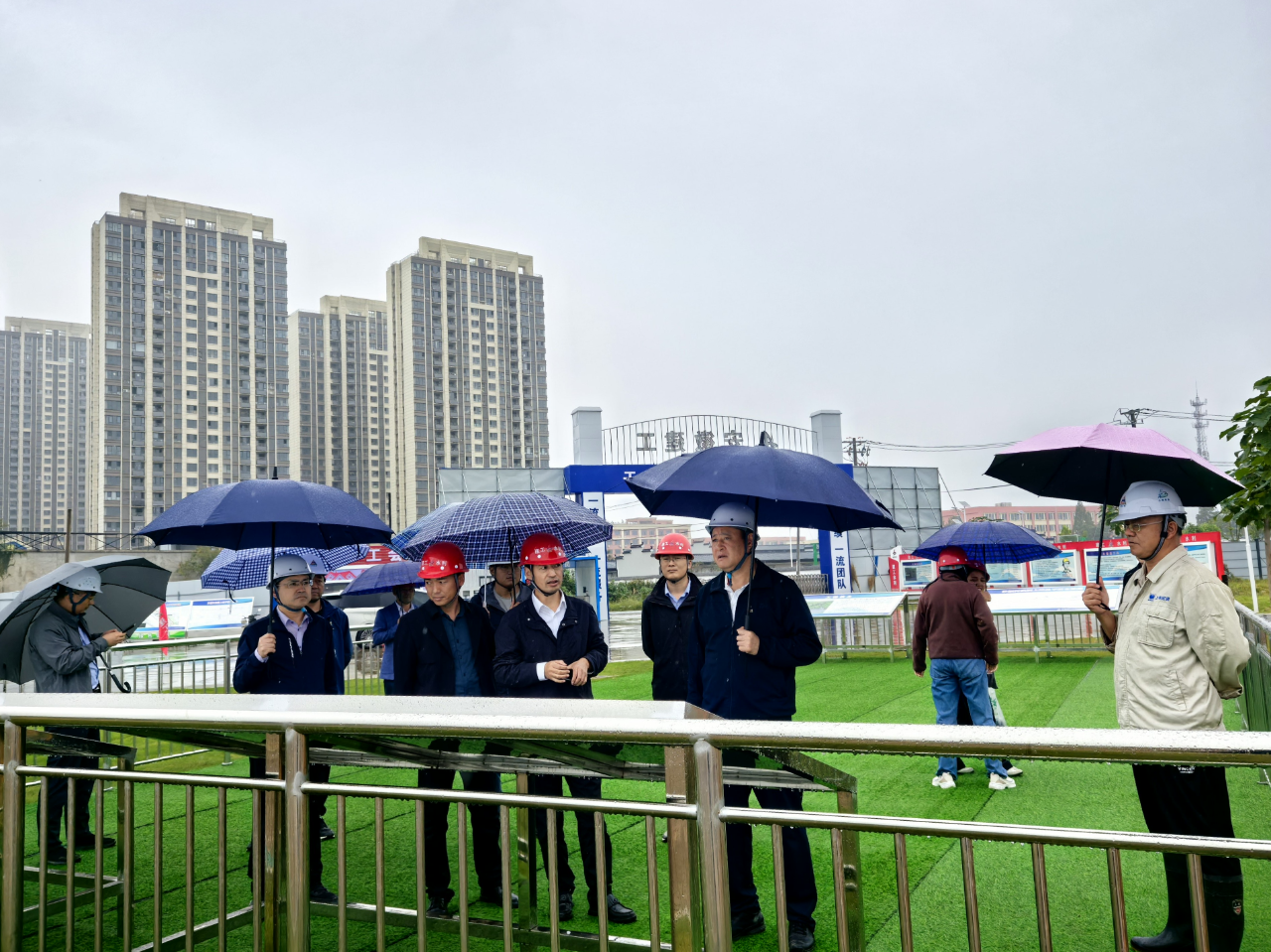 王慶武一行深入施工區域,詳細了解工程建設進展、關鍵節點控制及安全質量管理工作的情況,對項目當前取得的建設成果表示肯定。