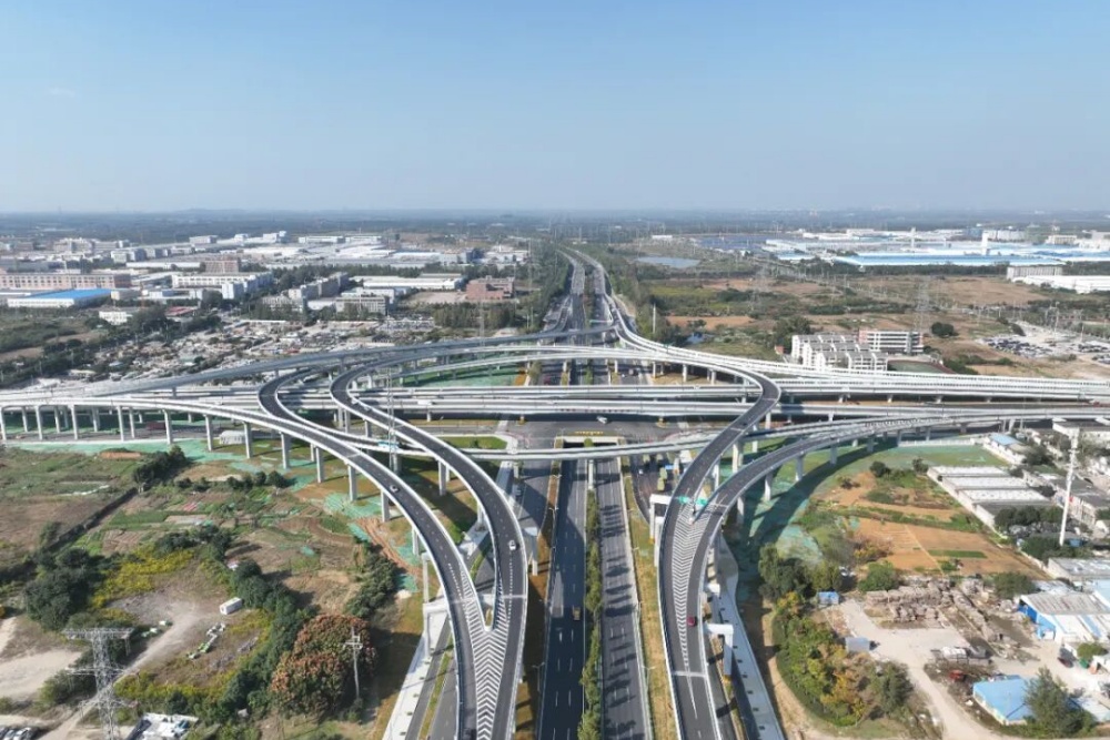 在G312合六路(南崗鎮(zhèn)-侯店路)工程中,長江西路與方興大道交口互通立交堪稱樞紐要沖。其上下5層的復雜結(jié)構(gòu),囊括了合六路主線高架與8條匝道,更需應對供電高壓桿線、地下軌道、高壓燃氣走廊等多維交織的現(xiàn)狀,并實現(xiàn)上跨機場高速與方興大道快速路,施工組織難度極大。面對挑戰(zhàn),建工建投集團深度應用BIM技術(shù),構(gòu)建了融合三維模型與施工進度的數(shù)字孿生系統(tǒng),將資源、安全、場地等關(guān)鍵信息集成一體,實現(xiàn)了對進度、物料、質(zhì)量的精細化管控與可視化模擬。憑借此項技術(shù)賦能,項目自2022年6月20日開工建設(shè),至2023年4月29日主線橋便放行通車,以不足一年的高效建造,跑出了令人矚目的“建工建投速度”。