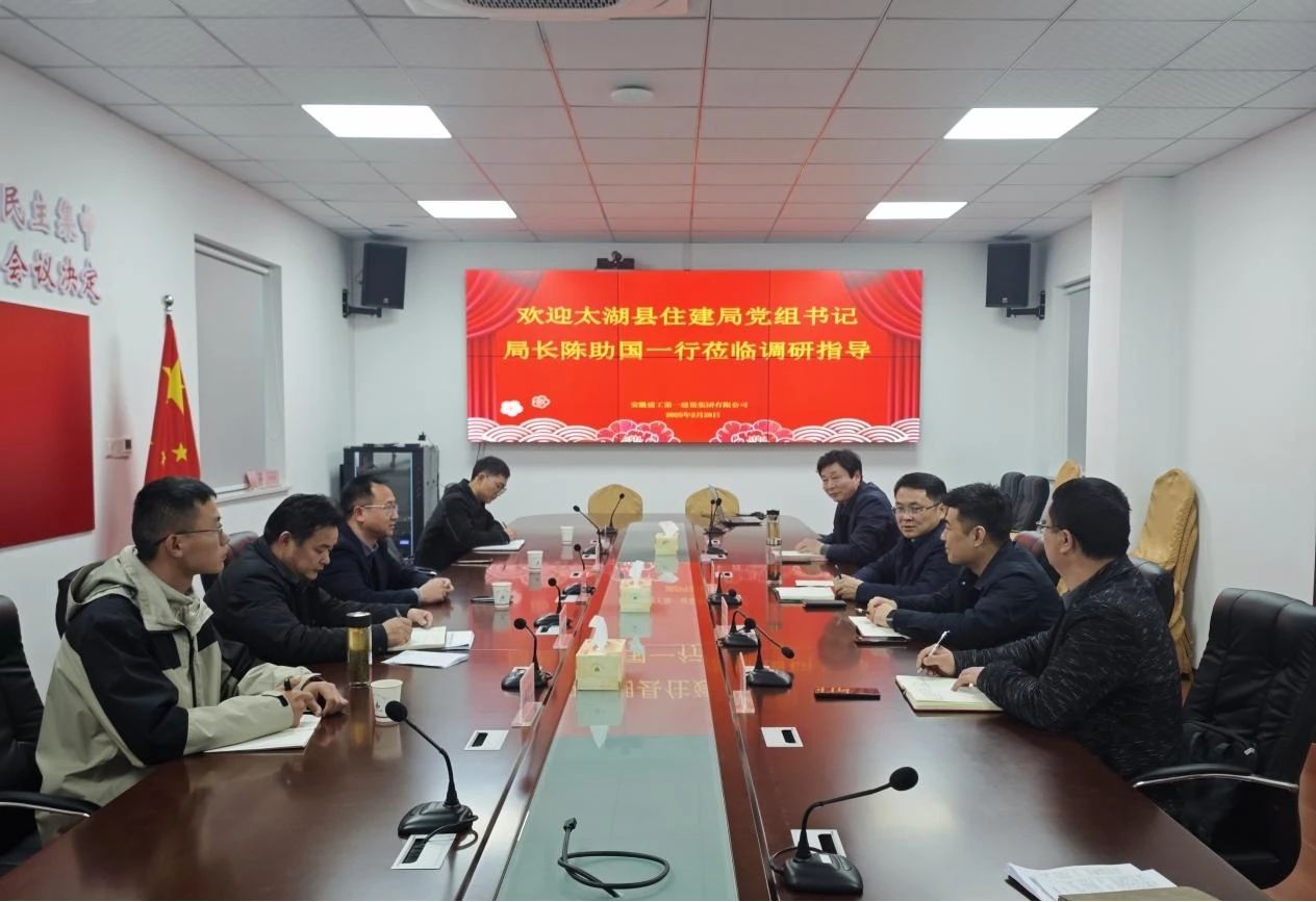 2月28日上午,安慶市太湖縣住建局黨組書記、局長陳助國一行蒞臨公司調研指導,公司黨委副書記、總經理、董事李建成熱情接待并舉行工作會談。