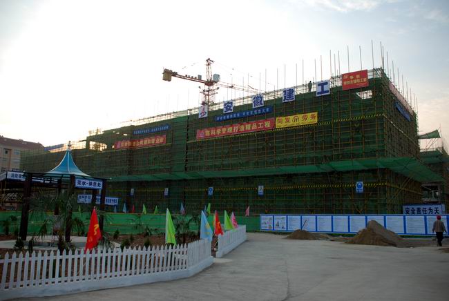 該項目是國內公司2010年度爭創省、市安全質量標準化示范工地之一。在項目的創建過程中,國內公司總經理陳傳文、黨總支書記陳月琴曾多次親臨施工現場指導現場文明施工和項目文化建設。公司對該項目健全了管理組織,制定了安全生產管理制度,加大了安全生產投入,選派二名專職安全員駐點管理,確保安全技術措施落到實處。同時,進一步加大了施工組織設計和專項施工方案的審核工作,加強了施工現場危險性管理和過程監控,保證了合同管理目標的實現;公司黨總支在該項目上開展爭創黨員先鋒號工程活動,有力地促進了雙文明示范的創建工作。2010年11月17日,該項目以88.9分的成績順利通過市安全質量標準化示范工地驗收。