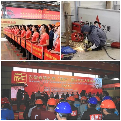 2015年10月14日,由安徽水利股份金屬結(jié)構(gòu)總廠承辦的安徽省第九屆“徽匠”建筑技能大賽在嘉和工業(yè)園如期舉行,來自全省各地市21支代表隊(duì)的近百名選手參賽。蚌埠市副市長胡啟望在開幕式上致辭,省住建廳、省總工會、蚌埠市住建委等相關(guān)單位負(fù)責(zé)親臨比賽現(xiàn)場。