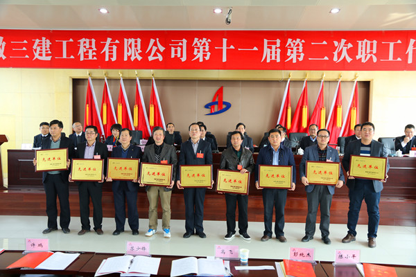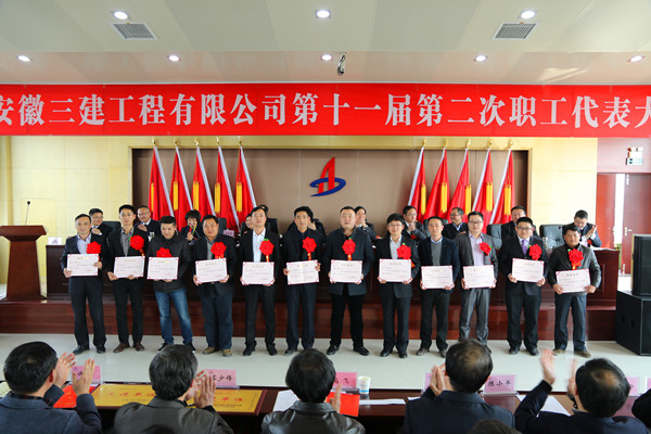 3月10日、11日,安徽三建工程有限公司十一屆二次職工代表大會在合肥隆重召開。來自全公司各單位的200多名正式代表和列席代表滿懷豪情齊聚一堂,共商公司改革發展和經營生產大計,為公司轉型升級、科學發展獻計獻策。大會聽取并審議通過了《經理工作報告》、《財務工作報告》等文件;會議總結和回顧2015年及“十二五”工作,部署和安排2016年工作,明確2016年工作主題是立足“經濟效益年”,繼續推進企業轉型升級,走高品質發展之路。會議的召開得到了集團領導的高度重視,安徽建工集團總經理、董事、黨委副書記劉家靜親臨大會指導并作重要講話;集團公司黨委副書記牛曙東就民主測評和評議領導干部提出要求,并部署工作。公司領導班子和成員進行了述職,代表們對領導班子及成員進行了民主測評;會議表彰了2015年度先進單位、先進集體、先進個人和首屆“三建好人”,七位同志作了經驗交流發言;會上選舉了公司董事會職工董事,對公司機關部門負責人進行了考核測評,簽訂了集體勞動合同和基層單位2016年度經濟目標、安全生產及黨支部目標管理責任書;組織與會人員向公司困難職工幫扶基金捐款。