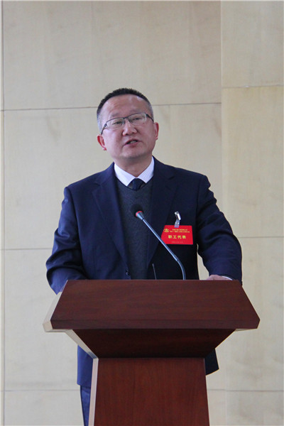 圖為集團公司總經理、董事、黨委副書記劉家靜出席大會并作重要講話