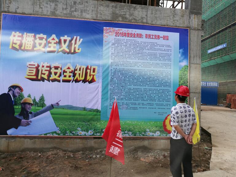 在本次“安全生產月”活動期間,二建公司安建·龍溪山莊項目部將根據集團及公司文件要求,緊密圍繞“強化安全發展觀念、提升全民安全素質”的活動主題,加大安全宣傳力度,組織廣大員工、一線作業人員學習相關法律法規,開展應急演練、致農民工兄弟一封信、播放安全警示紀錄片等一系列活動,創新安全警示教育,推進安全文化建設,精心挑選了一批安全漫畫張貼在施工現場顯要位置,通過各種形式向全體施工人員傳遞“安全生產”的理念,增添了安全月的活動氣氛,扮“靚”了施工現場。同時充分發揮現場質量員、安全員作用,將活動有組織的開展好,將現場的安全質量、文明施工控制好,實現項目部施工生產安全平穩推進。